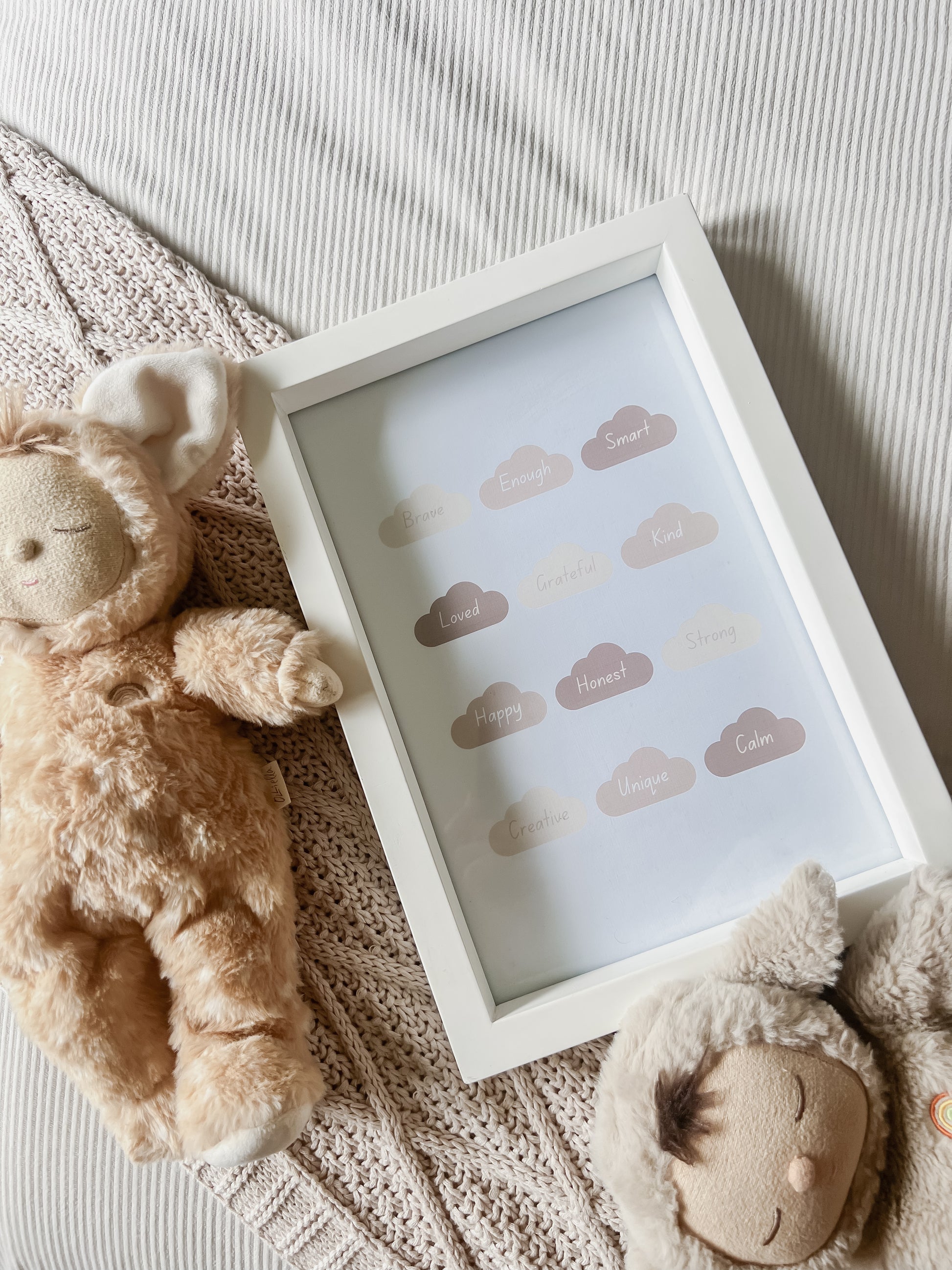 Our ‘Affirmations’ print will make the perfect addition to your little ones room. Gentle reminders to them that they are oh so incredible just the way they are.
