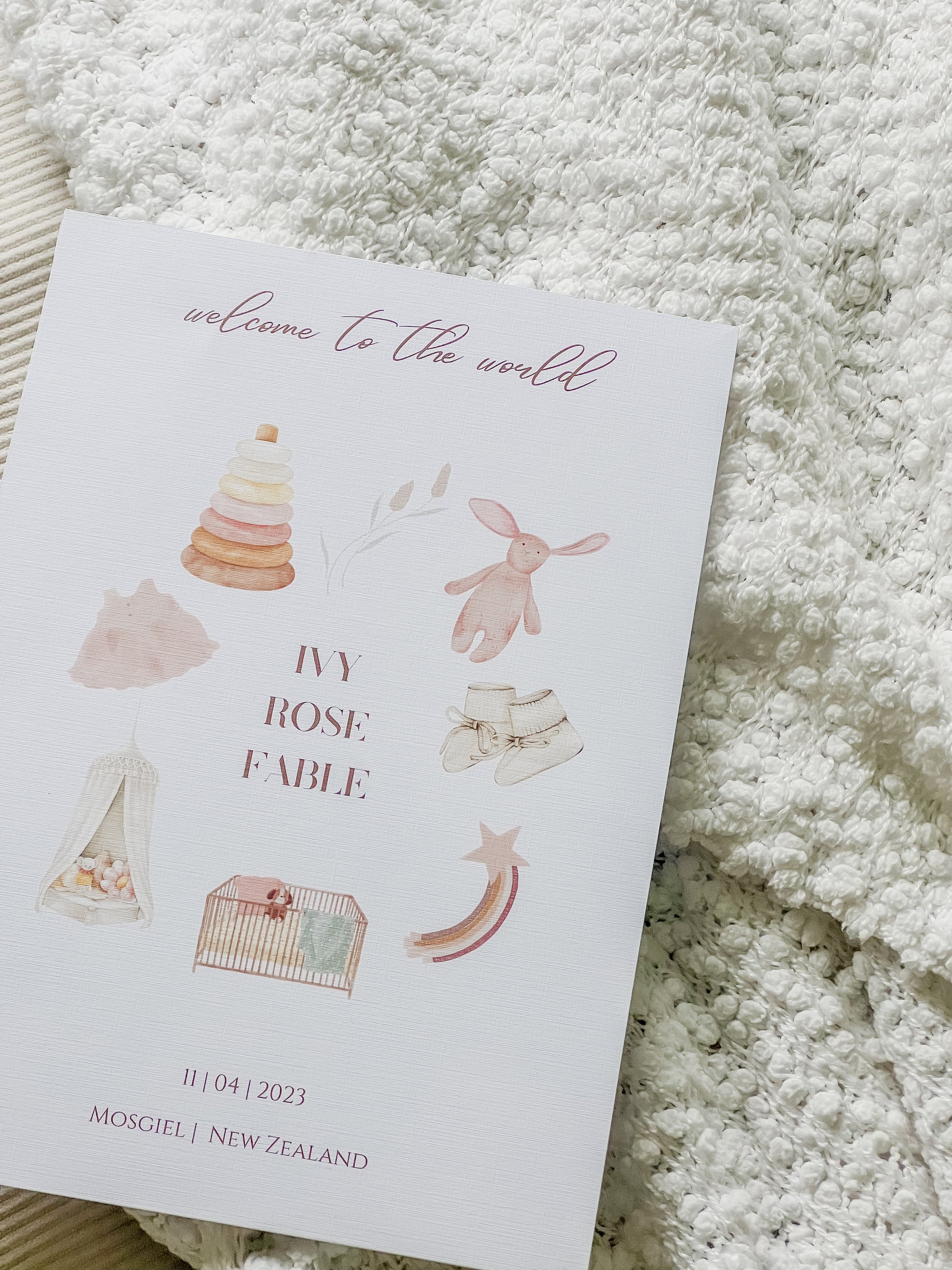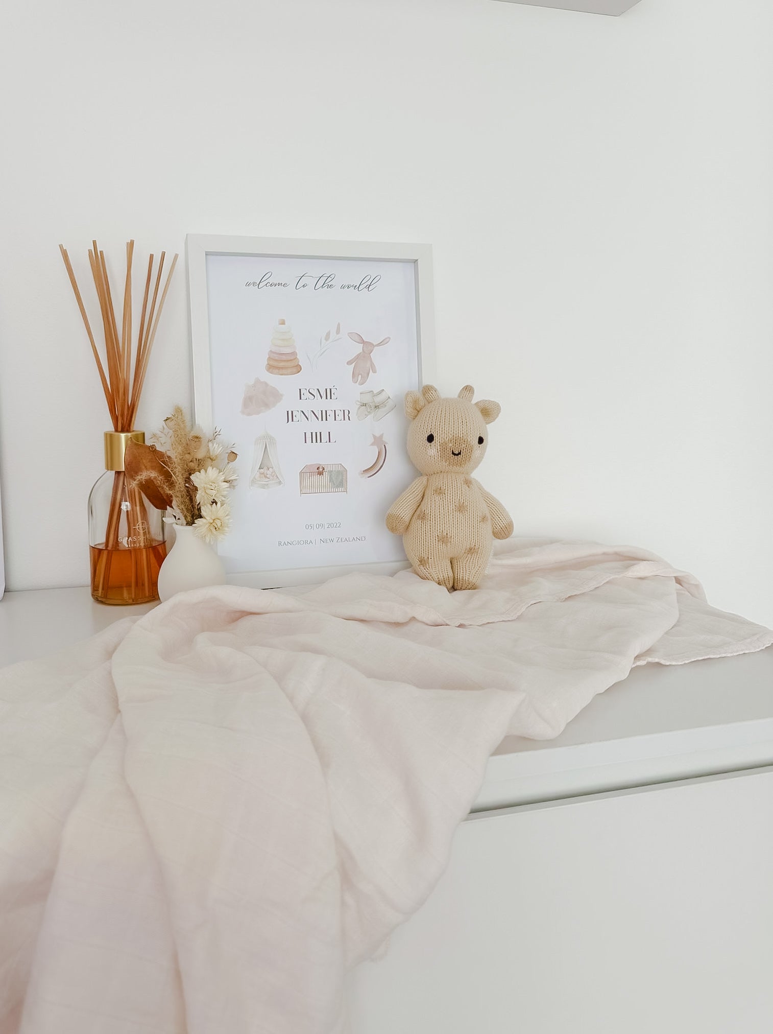 Our ‘Bloom’ Print is the perfect blend of soft pinks & the most beautiful addition to any little girls nursery or bedroom. Personalised with your child’s name, date of birth & place of birth. The perfect keepsake.
