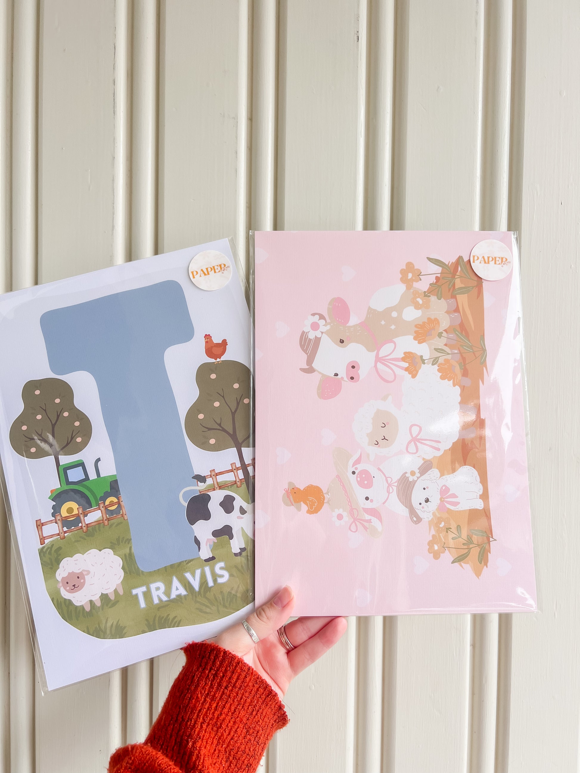 Bring the charm of the countryside to your little one’s space with our Personalized Farmyard Initial Print! Featuring a beautifully illustrated farm scene with adorable animals, a tractor, and lush greenery, this print is the perfect addition to a nursery, playroom, or toddler’s bedroom. This print makes a thoughtful gift for farm-loving kids, new parents, or as a special keepsake.