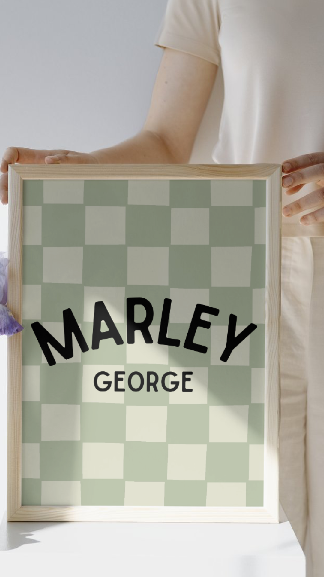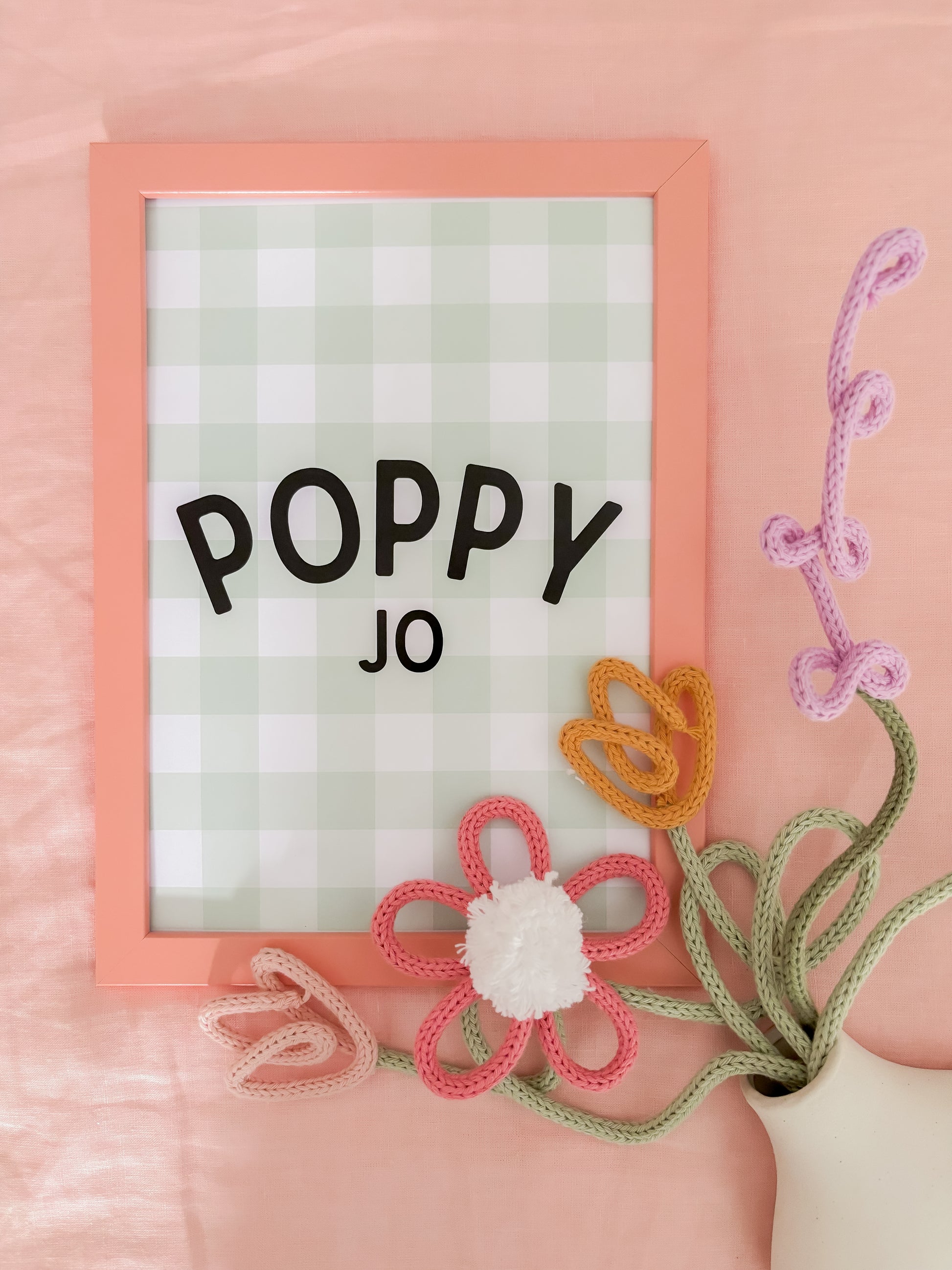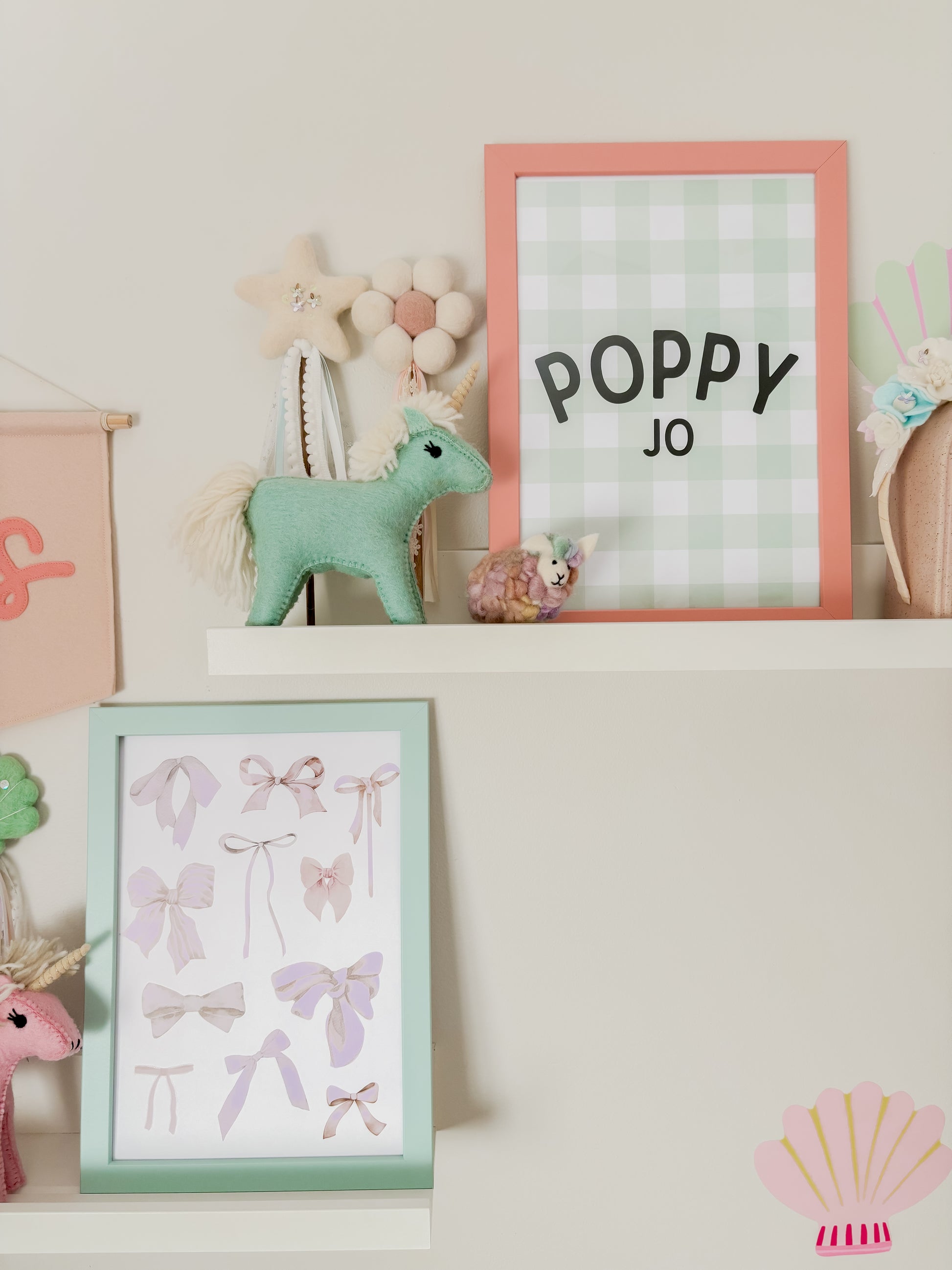 Our custom Gingham Print comes in 8 different colour ways & the perfect print for a pop of colour in your child’s bedroom! Personalised with their name & middle name. These details can be noted at checkout!