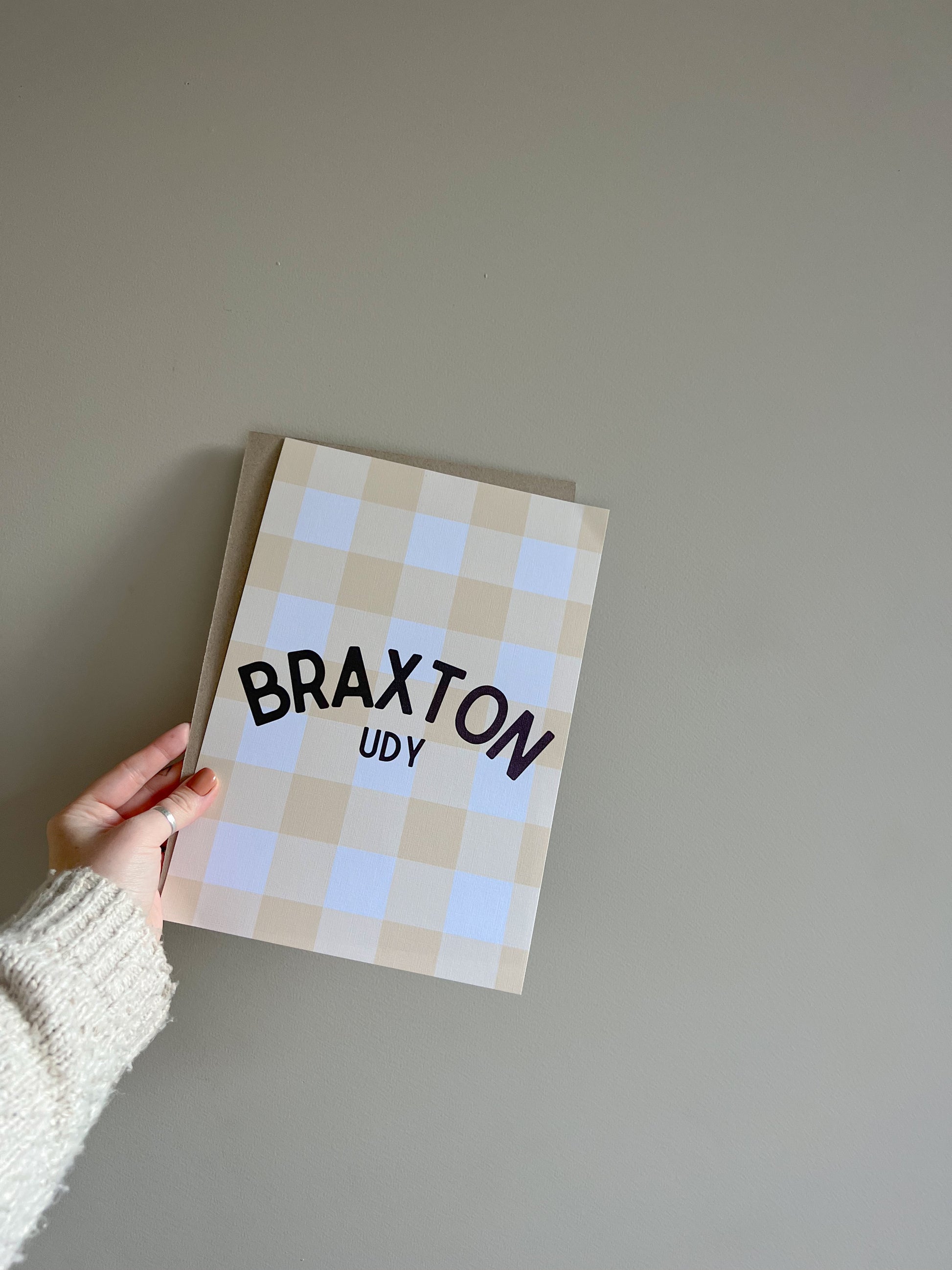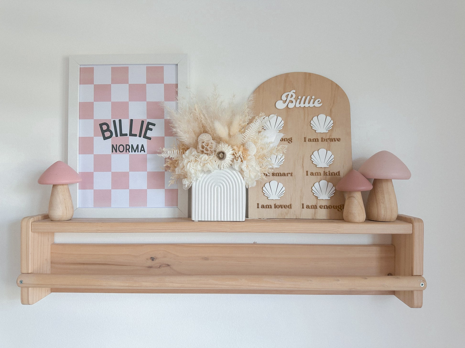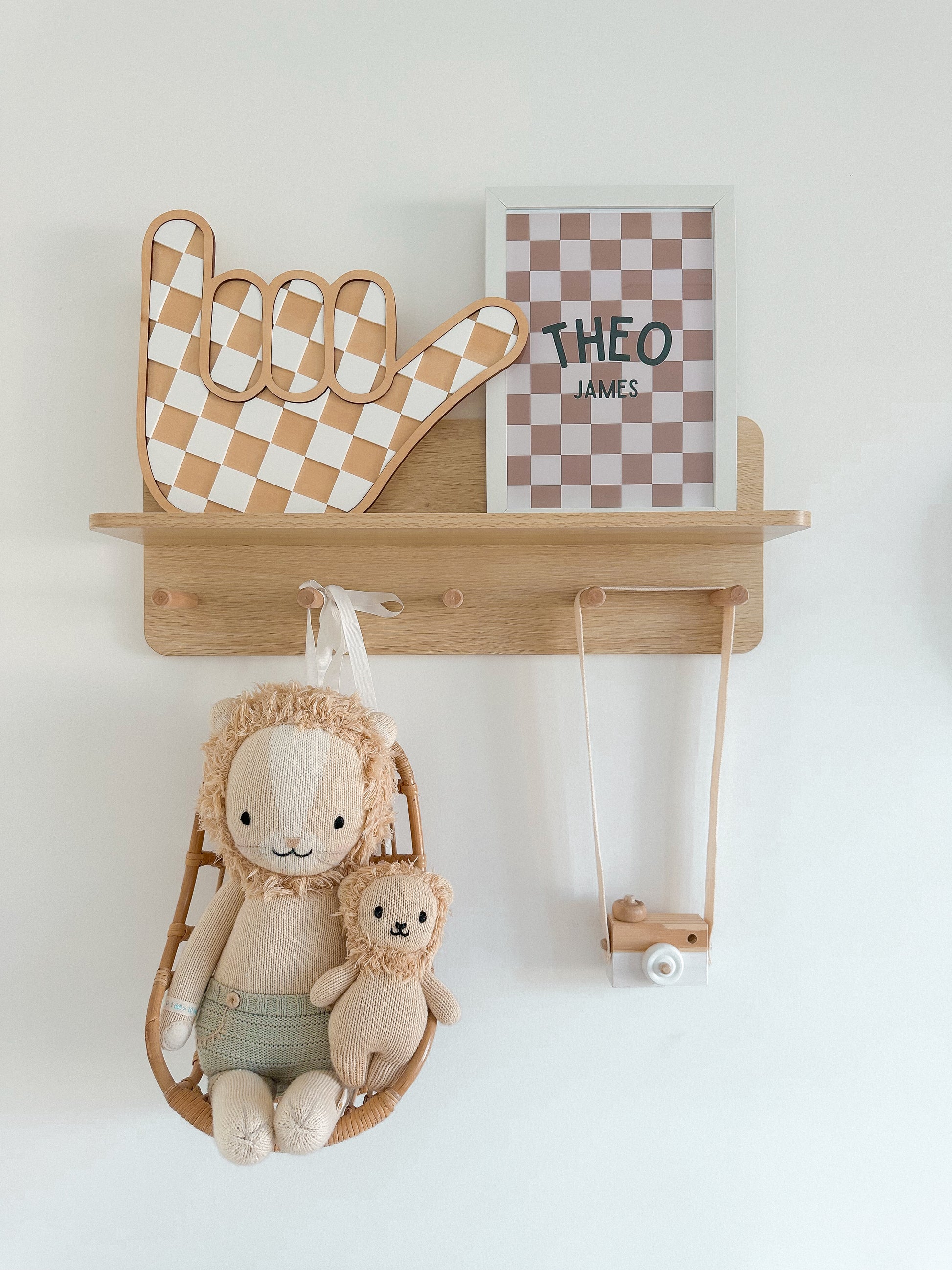 Our custom Gingham Print comes in 8 different colour ways & the perfect print for a pop of colour in your child’s bedroom! Personalised with their name & middle name. These details can be noted at checkout!