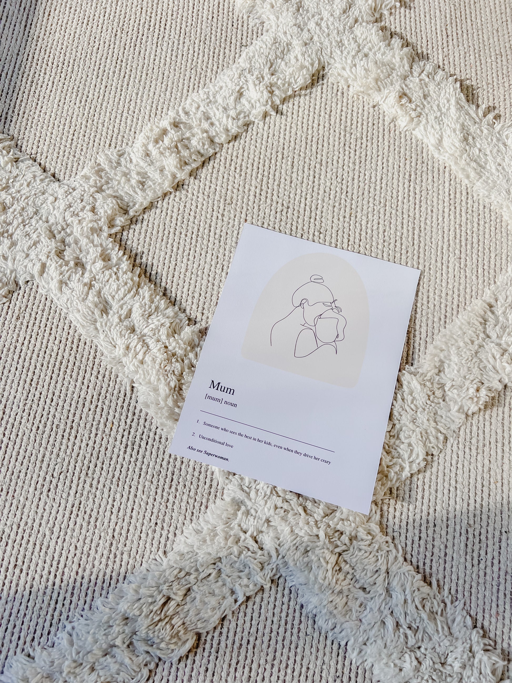 Needing a special gift for your Mum? A new Mum? Our Mum Print is the perfect, simple, statement gift & can be customised at checkout to your name of preference! Colour of background can also be customised!