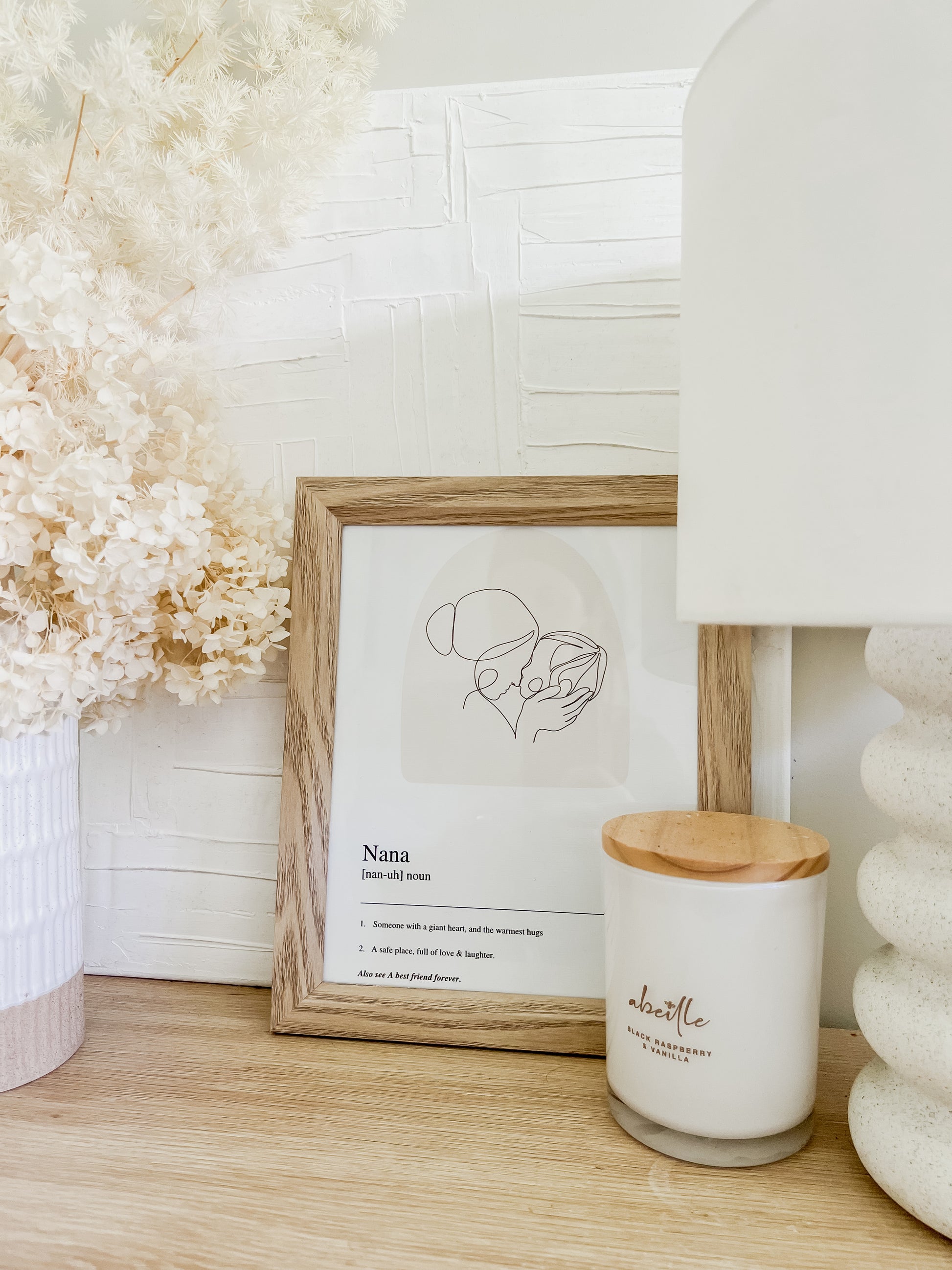 Needing a special gift for your Nana, or wanting to gift something from your children? Our Nana Print is the perfect, simple, statement gift & can be customised at checkout to your name of preference! Colour of background can also be customised!