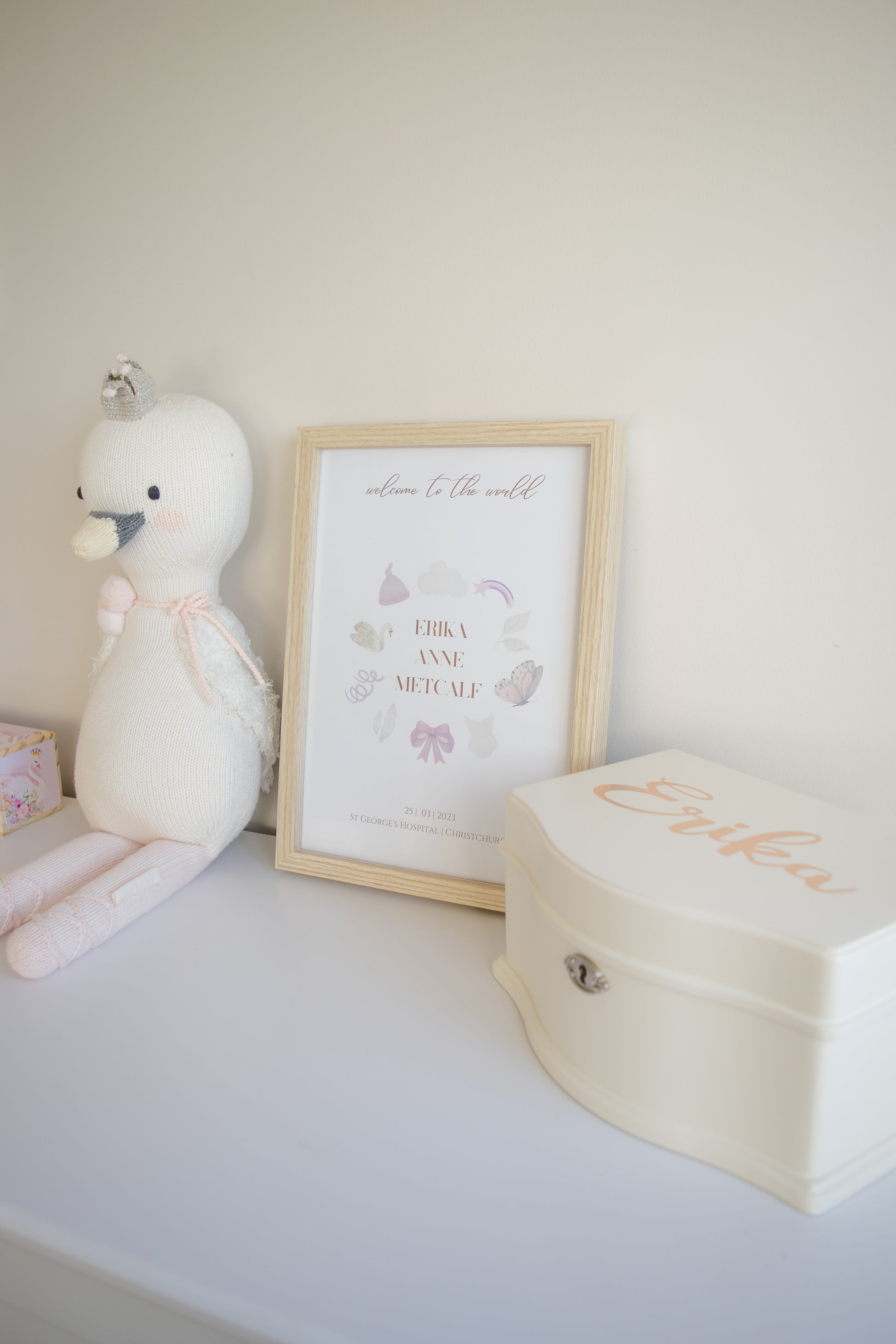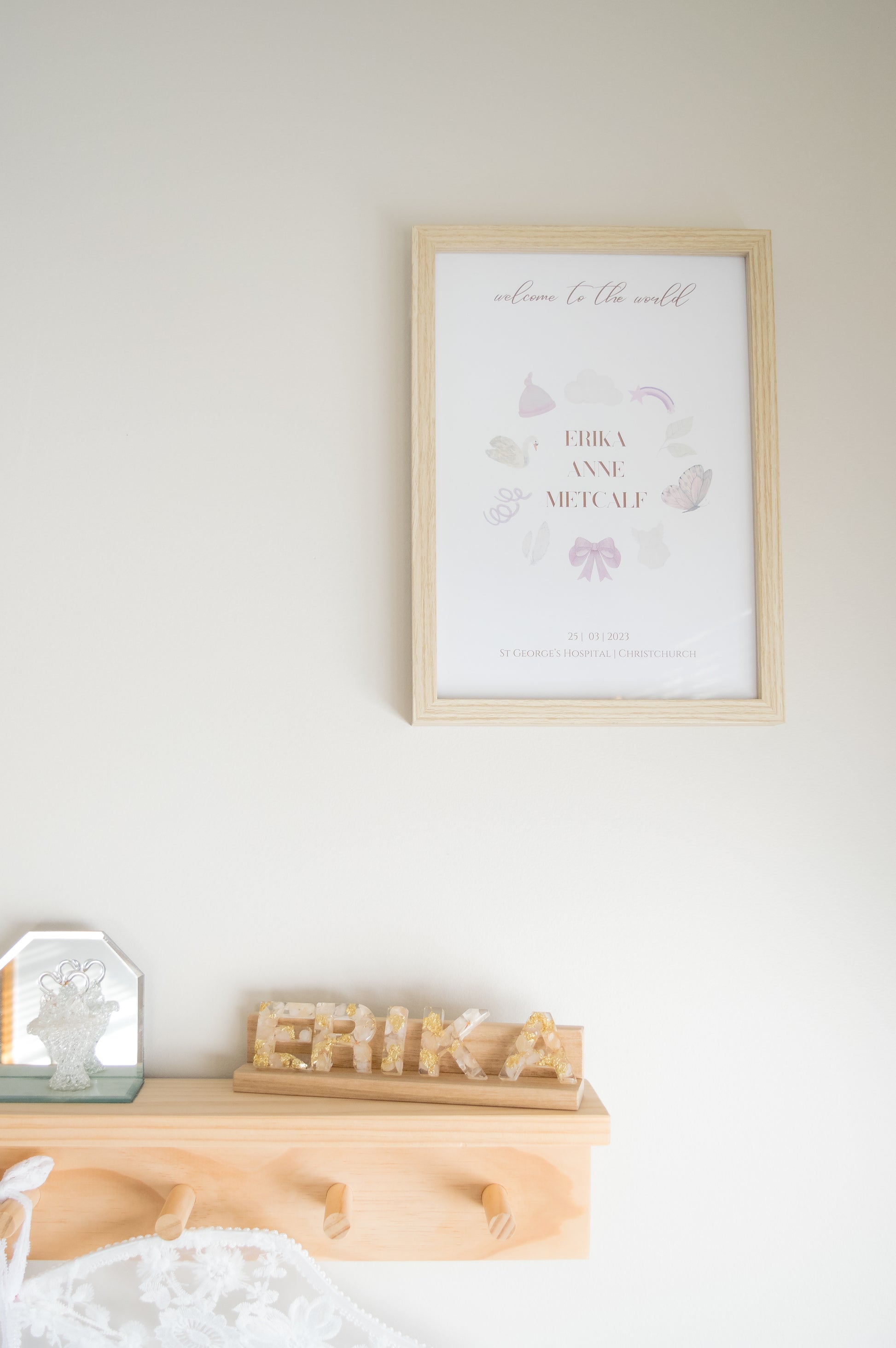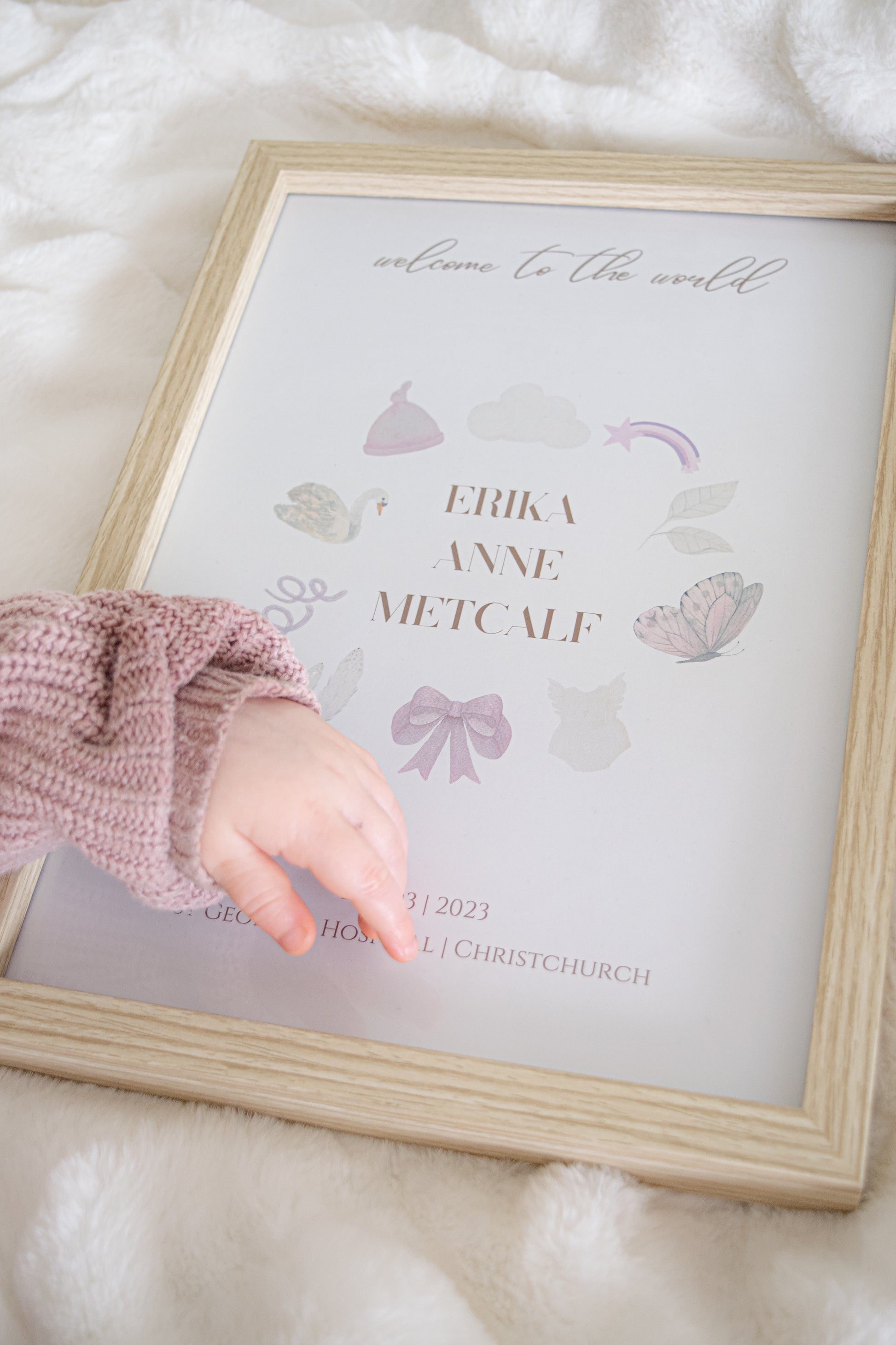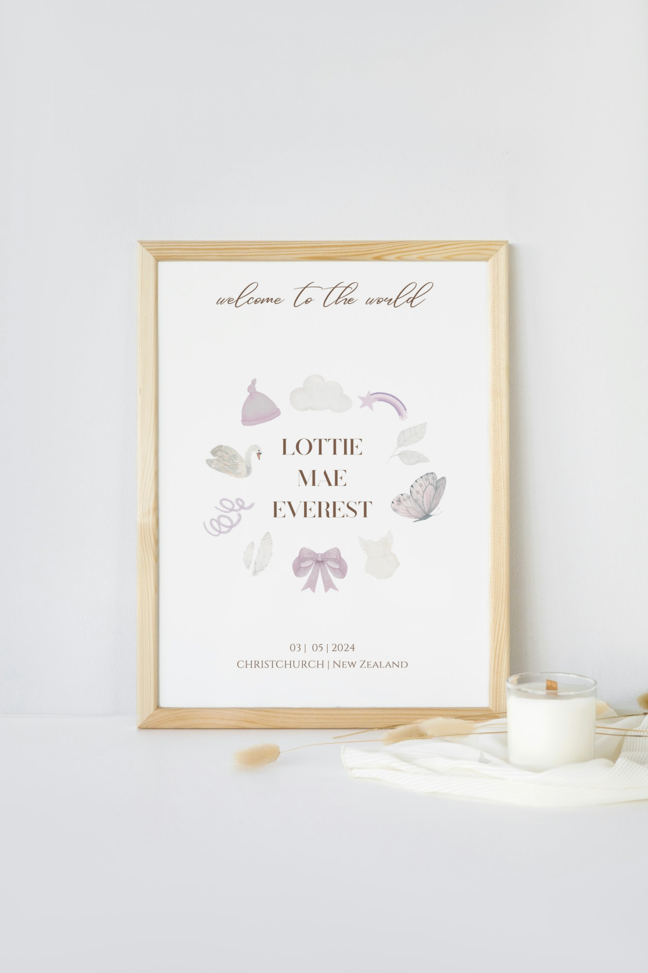Our ‘Viola’ Print is the perfect blend of soft purples & the most beautiful addition to any little girls nursery or bedroom. Personalised with your child’s name, date of birth & place of birth. The perfect keepsake.